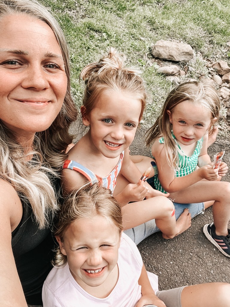 we have a really long driveway. the girls were all playing + doing their own thing. I randomly sat down on a tiny piece of the pavement to feel the sun. they all made their way over to sit or lay right on top of me. that’s when i snapped this pic. and i felt this overwhelming gratitude with a side of panic. how many more perfect moments like this could i possibly have left? seems so silly to let worry steal that joy away.